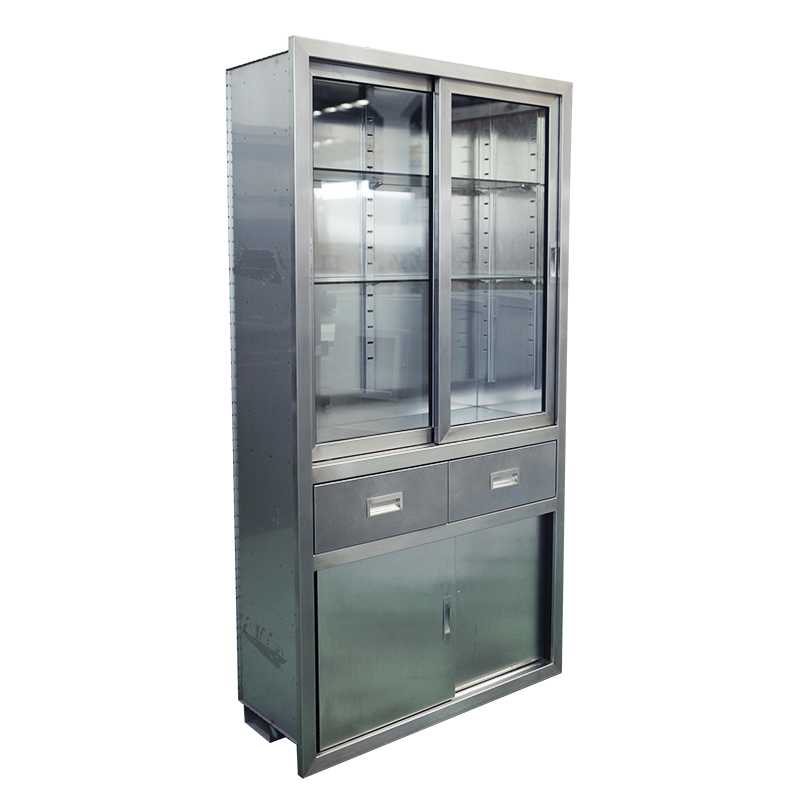 廠,實驗室等各種小型器械的保管和存放,采用sus304不銹鋼板制作,上層為玻璃門,柜體內部為圓弧造型,無死角易于清潔。
